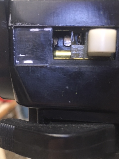 A Q-tip wet with lacquer-thinner cleaned the four terminals and the slide-rod. A tiny amount of di-electric silicone grease on these areas makes the switch glide, latch and manually unlatch, smoothly.