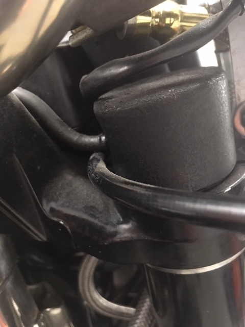 I have looked at parts schematic and the air cap with a valve is on the left as you sit on the bike, with a blank on the right so that seems correct. I dont seem to have the link pipe though.