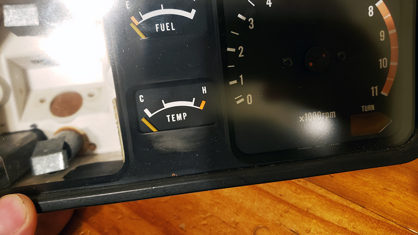 As far as the "powdery" substance on the gauge faces- this, in all likelyhood, is the paint on the faces starting to come off. :blink: If your faces still look fine, the best course of action is to just leave them alone. My gauges are in decent shape, and I can confirm there's no kind of extra anti-reflective coating, apart from the flat black of the gauge background.