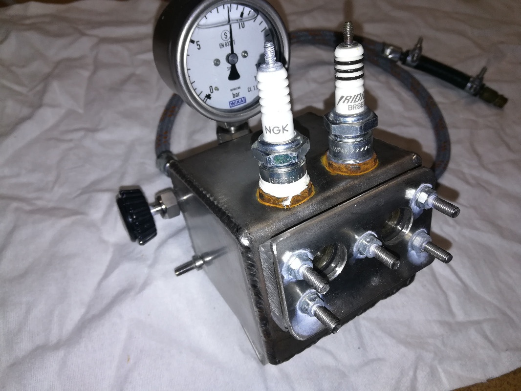 I aim to have the pressure at 10 Bar inside to rich maximum resistance of the air in order to create difficulty to ionize the spark, it also affects the firing line of the spark.