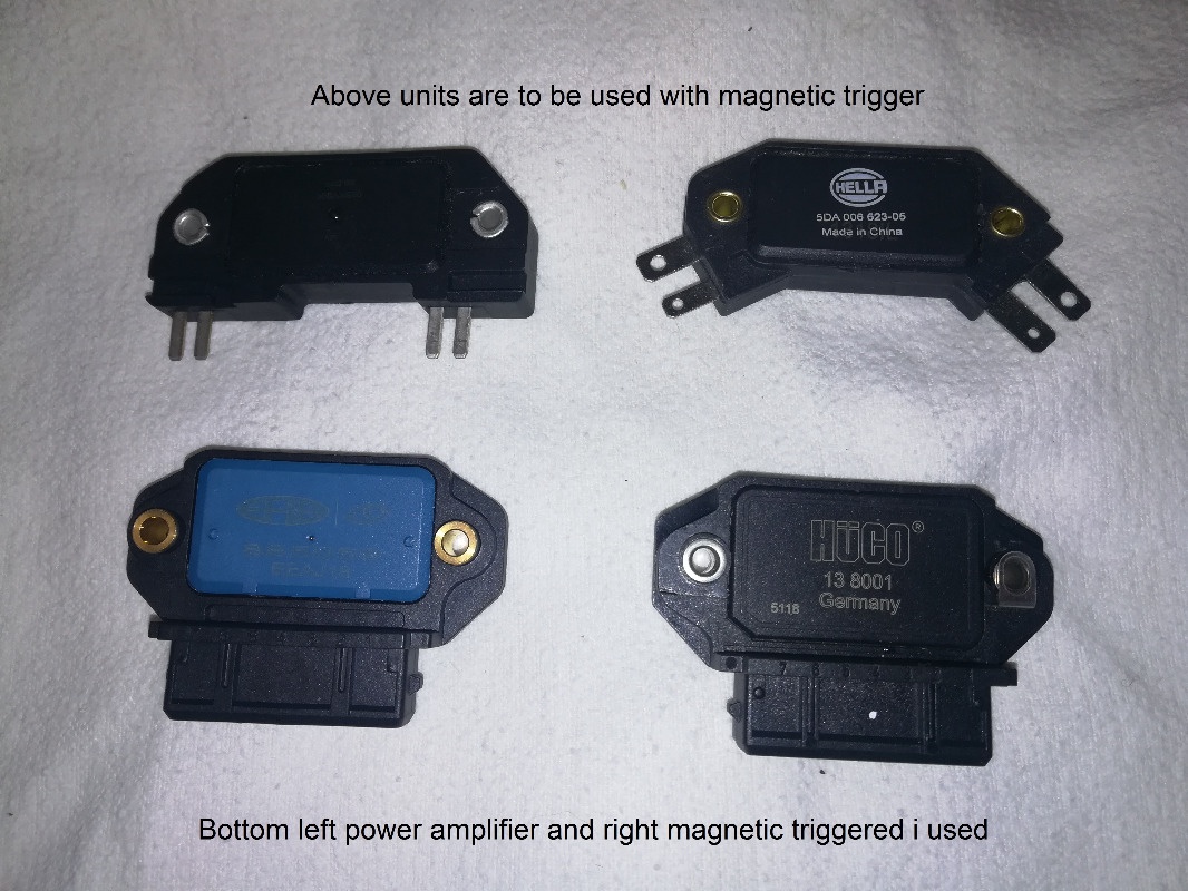 And here example of magnetic triggered unit and power amplifier only. The second one have no controls what soever and must be controlled by ECU for example EMU Black ECU for instance if used on custom build. Actually i was going to us it for digi injection, i even bought the throttle bodies but it never took shape. For now.