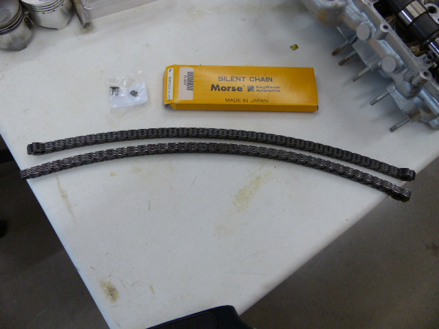 This is the chain laying on the table above the chain I removed from the engine. I measured the stretch on the chain and it was within the service limit but the side flex in the chain worried me, so I acquired a new one along with the master link. As you can see in the pic, the new chain has a lot of side flex as well. Must be the design of the chain, so I've learned something here and really didn't need to replace the chain. Still, it's a good exercise for me.