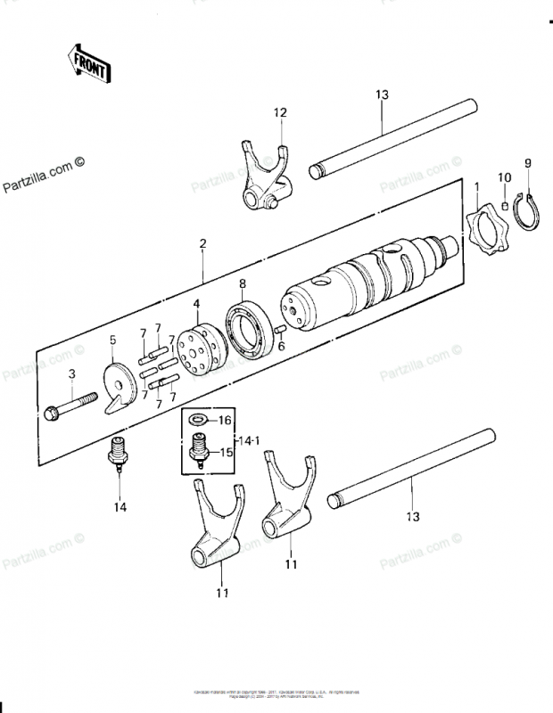 I checked that right away. All six pins are there. They also mic out at 4mm, a little bigger. The #6 pin on the water pump drive is also there. I'll check for the #16 pin on the water pump drive. Thanks for the blow ups. It doesn't look like the previous owner got any farther than splitting the cases and removing the one bad rod/piston assy. No way to contact the previous owner. This bike has gone through several hands.
