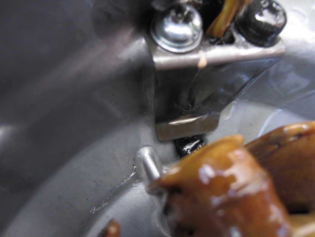 Secondly, check that after you have re-sealed the wire grommet into its slot, the wiring loom containing the stator wires has not pulled the bottom of the clamp away from the cover…