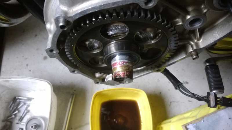 Bill do you like the coke can on the taper which spaced the roter out making the starter sproket just move where ever it wanted .I do hate people who dont know what there doing just imagine the rotor coming loose at say 6000 revs SCARY . it had just had an oil change but once its all bach together i'll warm her up and do oil and filter again (best time to do oil change is when it hot oil runs quicker bringing any rubbish with it .