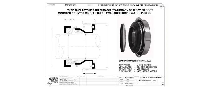 2 years 7 months agoThis is a design drawing from Zed-Parts website of the mechanical seal. You can see the bellows that seals the carbon face to the metallic housing that gets pressed in to the aluminum seal housing. This really is a complicated way of sealing the stationary seal face (the carbon face) to the housing. Instead of a stationary face with an oring between the outer diameter and the housing, in this design there is 4 seals that have to work in order to seal the stationary face to the cylinder block. There's the seal between the metal ring of the stationary seal, both ends of the elastomer bellows and the oring between the seal housing and the cylinder block. There's also the seal between the rotating face and the impeller and finally the seal across the seal faces. So in total there are 6 possible failure points in this seal design.