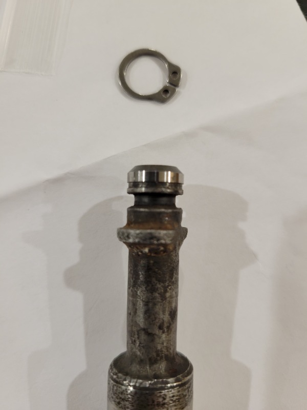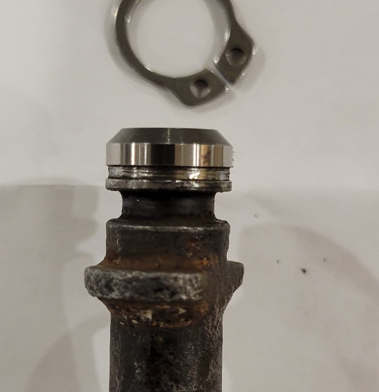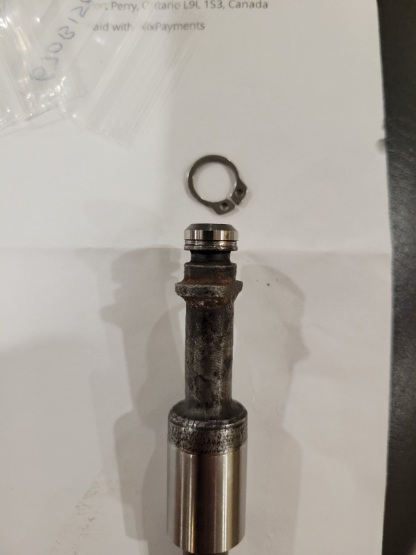 "This is the new s.s. circlip installed on the shaft AND as far as I'm concerned the groove in the shaft is about .010" not deep enough in diameter. I can't spin the circlip on the shaft AND I will fix the depth of the groove before I finish this job. I've run across this kind of issue many times at the plant and I'm sharing my knowledge for your entertainment. Hopefully, people can benefit from what I try to explain. This "stuff" is not common knowledge and maybe only a few "tradesmen" would know the proper fitment of something as simple as a circlip. In nuclear and aircraft mechanics, we all know what happens when the small stuff is overlooked."