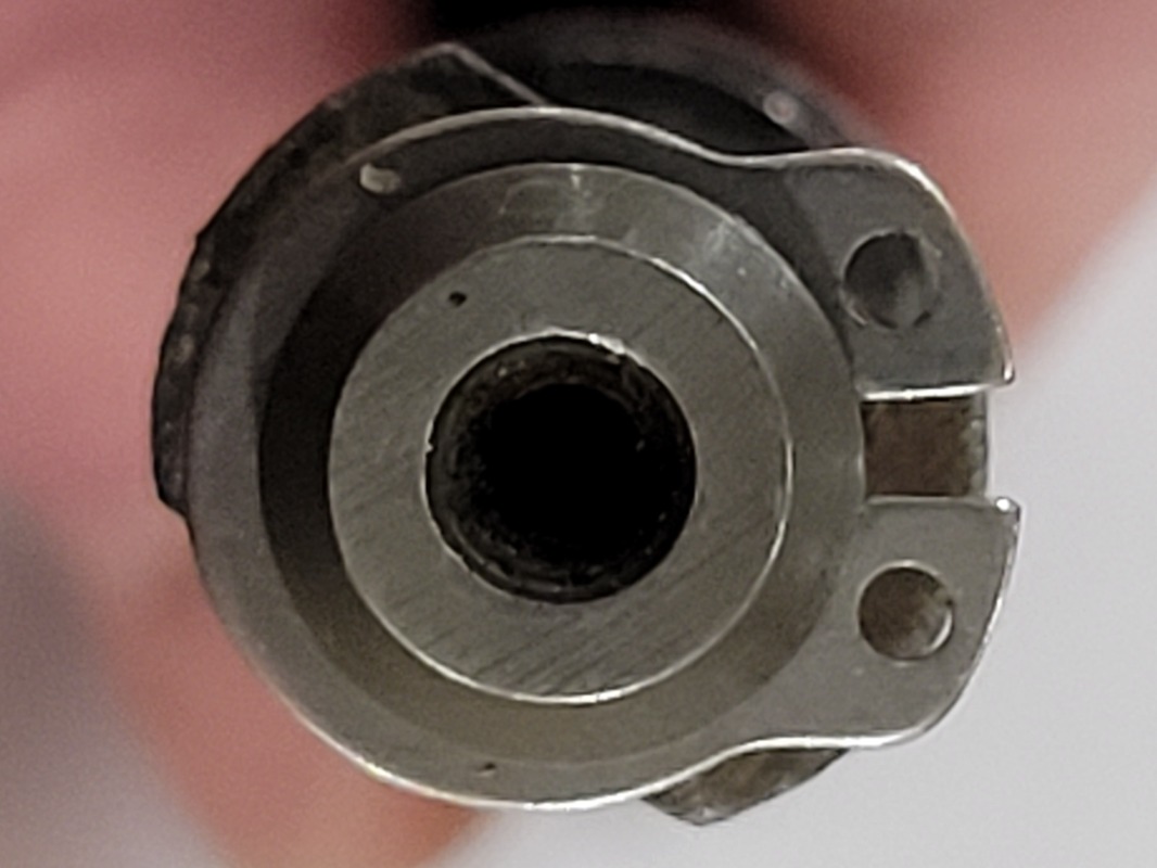 And this is after I had cleaned up with the needle file and this is what I had installed the circlip on. Note the ridge at the bottom and top of the groove that probably is still holding up the circlip off of the bottom of the groove. it doesn't take much especially when the groove is so shallow.