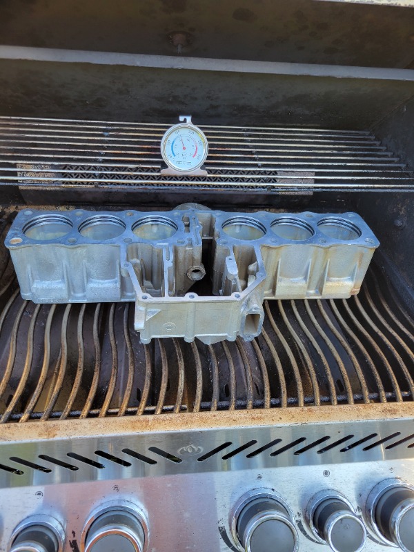 Cylinder block "on the grill" and as an insurance I used a baking thermometer to double check the temperature