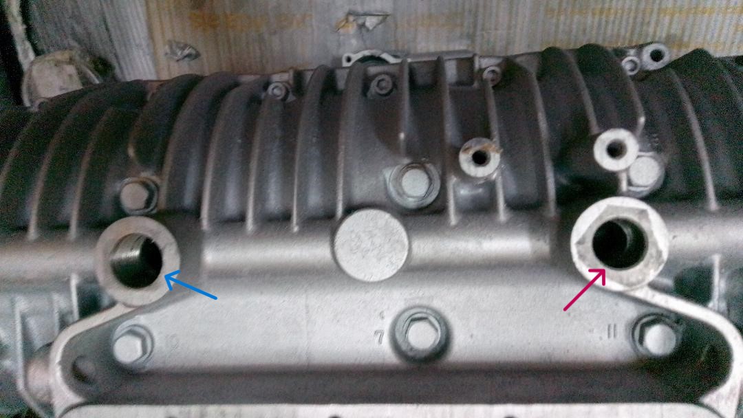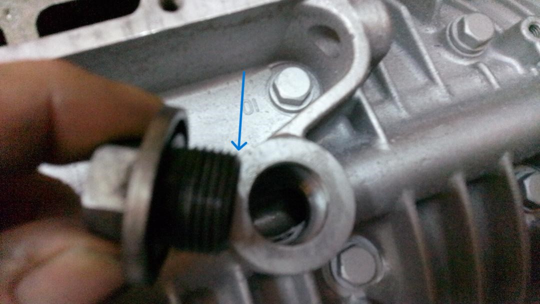 We have two holes in the oil passage at the bottom of the engine block.