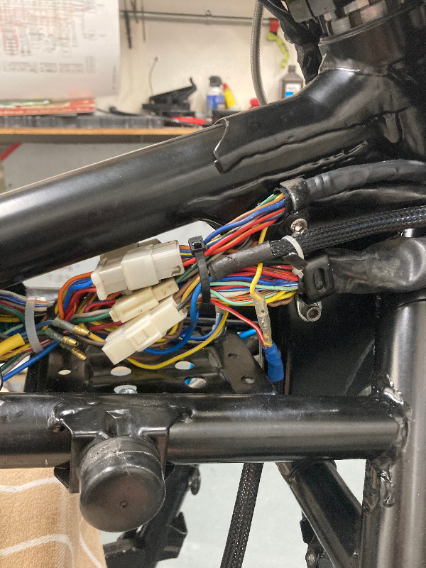 This past week I finished all the electrical - everything works, but it was a fair bit of work. Two-thirds of the plug ends and terminals were replaced. I stripped the sleeving and tape wrap to check all the wires and splices ...that you can't see and would never know they were there and did a lot of untwisting and reorienting. I decided to leave the harness bare.