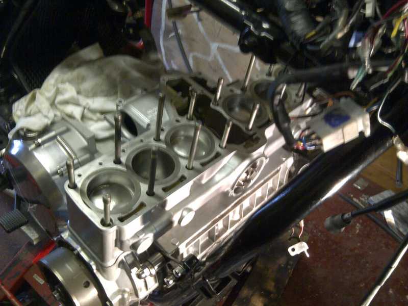 I got my top end (cylinder block / jugs) back onto the engine with the new rings fitted.