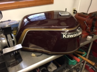 Hey guys. I'm getting close(er) to putting my 1980 B model together as an A model. It has been a bit of a pain because every time I take something off, I spend a bit of money and time trying to get the right part to put back on. I finally have all of the touring boards, guards, shifting and brake levers off. I have my new seat and used tail piece here, and the impossible to find taillight assembly will be here soon.