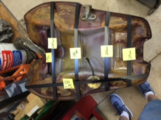 My thanks to all for the responses. As always, I will try to respond to the latest comments in one shot. The tank was not attached when I purchased the bike, so I have no way of knowing if it is the correct tank. Regarding measurements; those provided to me helped a lot. I have measured my tank in the same manner and will post those pictures. I included the dimensions of the mounting pucks on the frame. They are an inch and a half narrower than the distance on the tank. I also included the number on tank in one of the pictures.