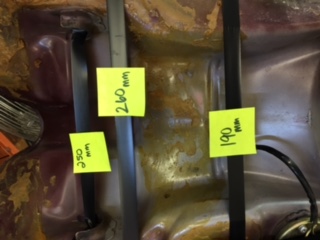 In reference to the third photo down from the top, either my eyes deceive me, or there is a photographic illusion. The bottom of the tank behind the tape marked "190 mm" appears to be bulging downward. There also seems to be a line in the paint on that area that would be made by the backbone of the frame hitting it.