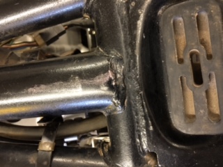 That hose was one of the first things we checked, but it is not the culprit. My Geometry teaching wife and I have tried repeatedly today to get the thing on, and it just won't fit. She took several pictures and asked that I post them and get suggestions from you guys. With the two rubber pucks near the 'U" cups under the tank, it seems the tank is too wide, sitting too close to the neck, and the last picture has a light shining where the bottom of the tank is rubbing the frame.