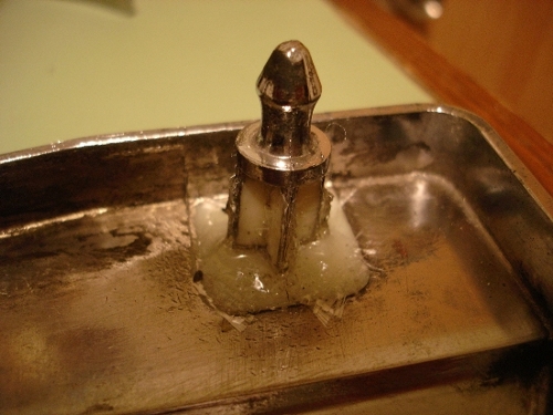 Here's the post after I've trimmed up the glass fabric and applied another coat of model cement.