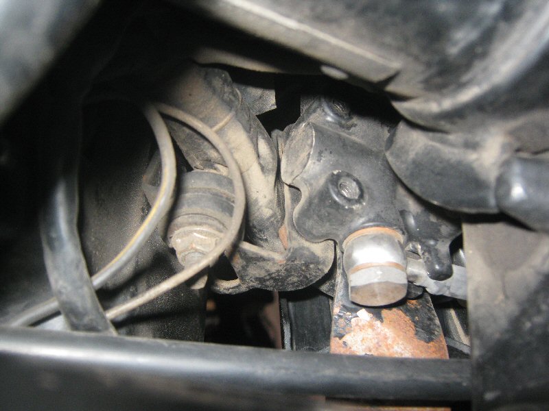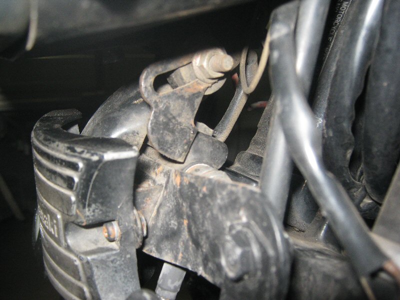 The bracket fastens to the junction piece where the 3 brake hoses meet. The 2 bottom holes fasten the junction to the frame and the upper 2 are for the headlight bracket. I tried to upload 2 pictures but kept getting a Fatal Error message. I have also had problems adding pics to my gallery because the size was too big. I don't get it, it's just a normal 14 pixel camera!