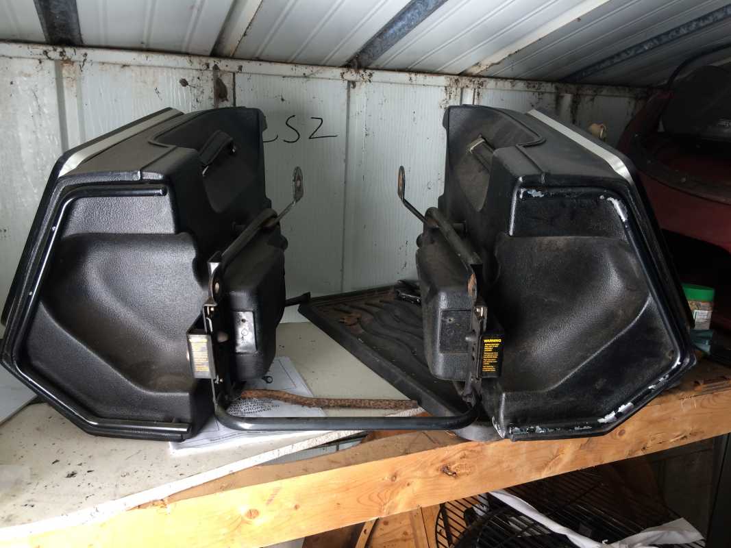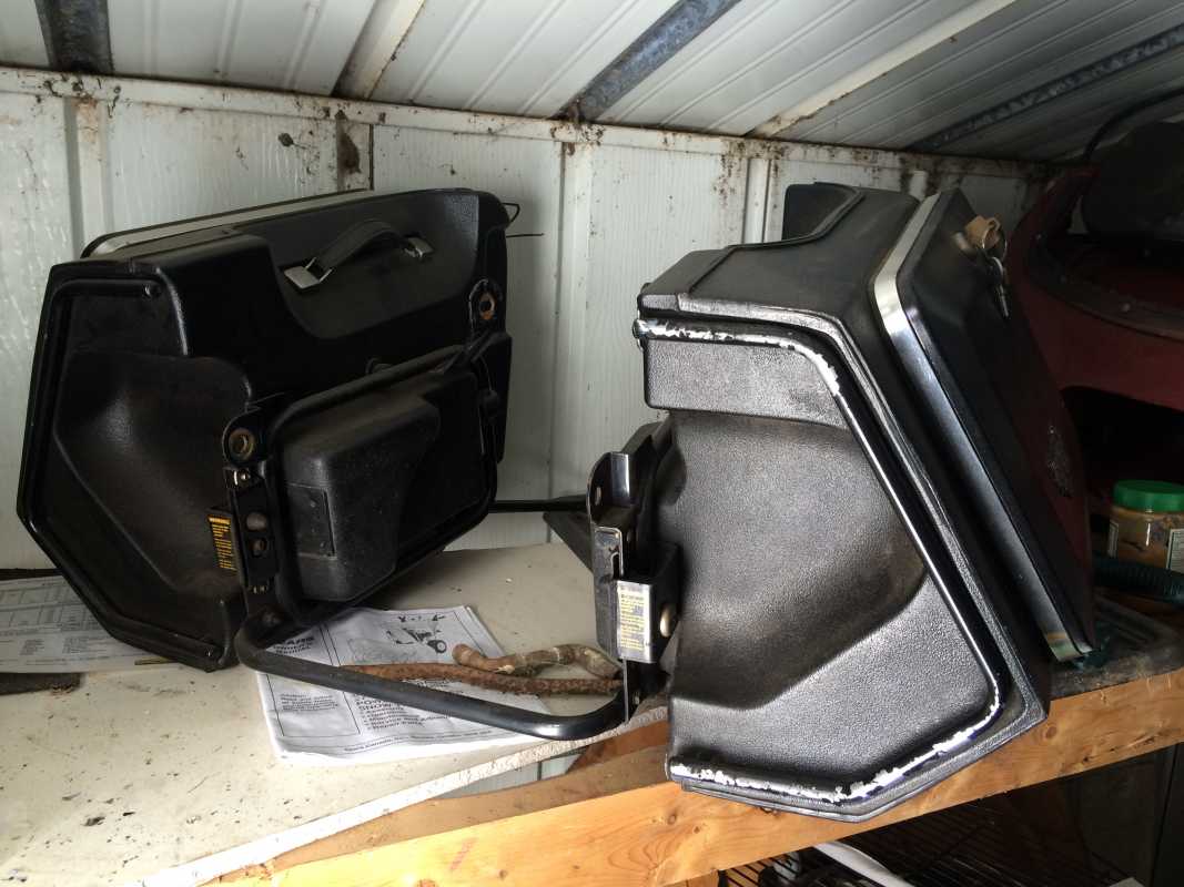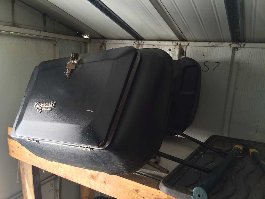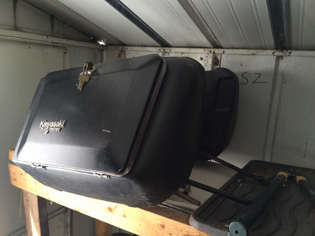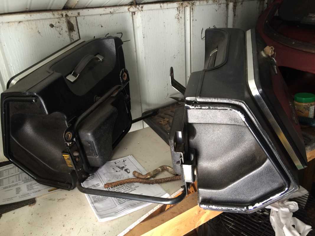 Vetter luggage bags. Sorry for the crappy picture...I'll get a better one soon if anyone's interested. I have the whole Vetter setup in my garage. I took it all off the bike when I bought it 10 years ago. I had the hard bags on it once and then took them off because I prefer the sport bike look. The bags are in good shape and have the key to lock them as well as the mounting hardware.. The tank isn't for sale.