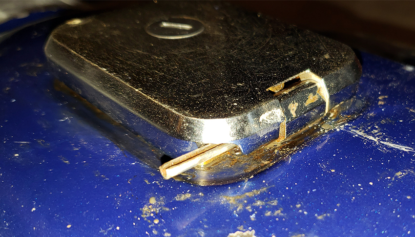 Screwdrivers, hammers, chisels, drills, and a drill used to open this gas cap..... In case of the gas cap, you can remove it by tapping the pin out. Then it comes off and is ready for any servicing - which I am doing right now on a cap that came with a rusty tank. First - the cap was stuck completely solid. It took quite a bit of time and shaking a mix of nails and vinegar to 'unstuck' it. The rust crust came off and applying Kroil (the best in my opinion penetrating oil), all started to wiggle and move around nicely. It wouldn't open with a new made key (from a helmet lock from the same bike so it should fit), so I removed it tapping out this pin. The latch was still stuck. After a quick ultrasonic cleaning all moving freely. Now further dismantled, more manual and ultrasonic cleaning, and it should work. If not, in case like of a stuck the broken off key tip, a cleaned up gas cap should be an easy thing for a locksmith. If not - at least no guilt after trying all other solution before destroying it.