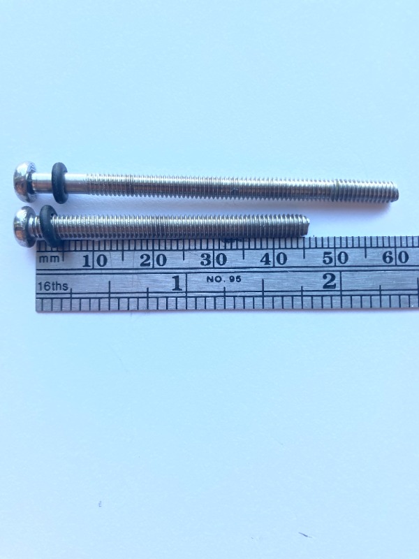 It is metric thread with Phillips head. M4 thread if i remember correctly, a longer screw can be cut to size. You should be able to find a distributor in US with metric size screws.