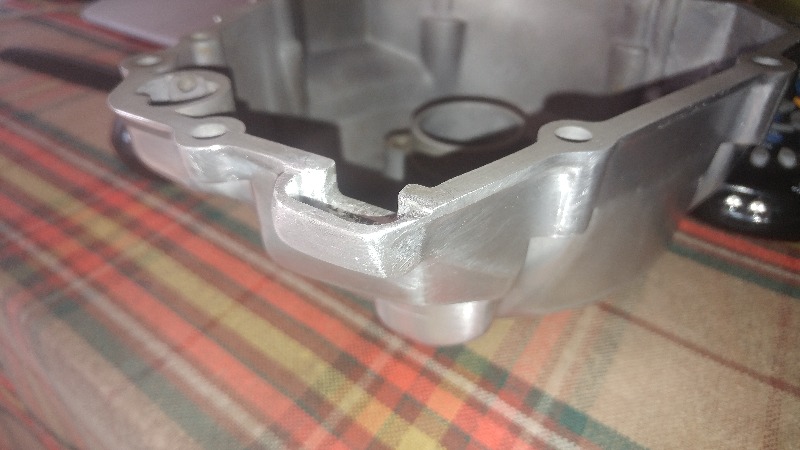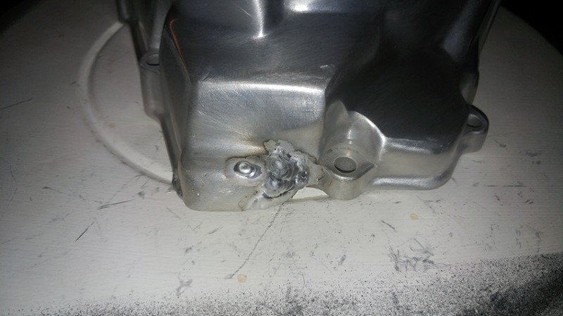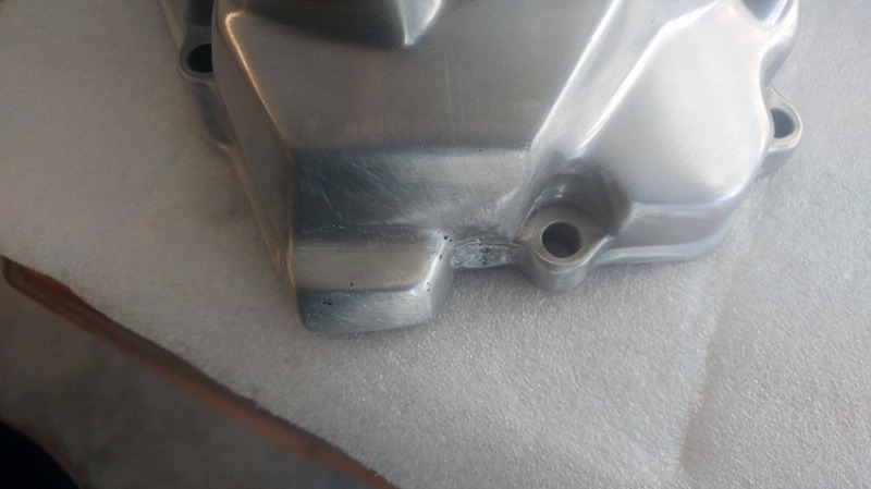 If anyone remembers, I had a side cover that needed some repairing. The chosen plan of action was to have the wall build up tig welding. Here is how it looked before the 'repair'.