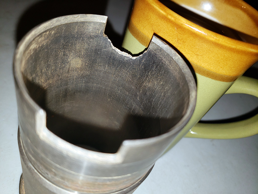 Is anyone parting out a cylinder block? I have a nice almost brand new block which I will be using, except for one sleeve. It's a very nice sleeve except for the chip. I have a feeling it would actually work, as the rings wouldn't even come close to this. Ideally, since all is being done, all should be done right.