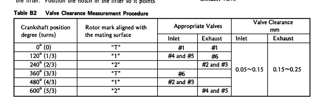 i am about to do a valve clearance check and the chart shown above from the manual refers to the marking on the rotor I.e T, a 1 and 2 my rotor does not have any markings on, I have been told that I could check the clearances by positioning the lobe pointing away from the shim and doing the measurements , has anyone used this method and will this work?