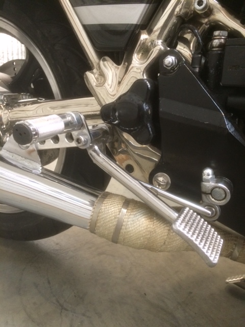 I've always found using the rear-pegs more comfortable then the front ones. The down side is having to re position when needing to brake or shift. I made these simple "rear-sets". The stock controls and pegs can be reinstalled back to the OEM tandem configuration in about 20 minutes. I purchased another shifter and brake lever off E bay so I could keep the originals for the tandem set-up.