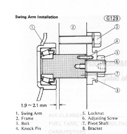 Yes, the pivots are to preload the bearings. If I remember it correctly, there should be a gap of 1-2 mm between the swing arm and the frame after adjustment. I also applied a bit of anti-seize on the pivots before installing them. I must say that after replacing the bearings and proper adjustment, the wheel of course had the bearing replaced (so the front and triple tree), the bike is very solid - absolutely no swaying or wobble.