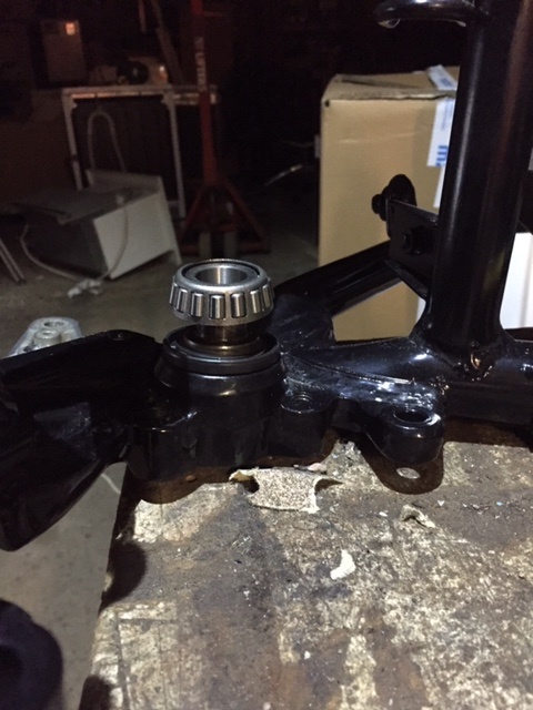 Then I tried to fit the inner bearing section onto the pin and it doesn't seem to fit! I know it needs to be tight, but again, it seems to need forceful hammer blows to go over the pin. At this stage I have not done that - decide to take advice. Please see pic as to what I mean by it not going over the pin. NB, the frame is on its side.