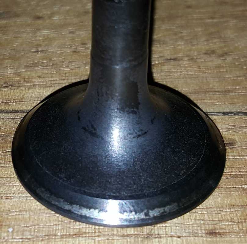 Here are the exhaust valves (2 only)that have been hit with a brass wire wheel. That build up on the head of the valve will not budge.