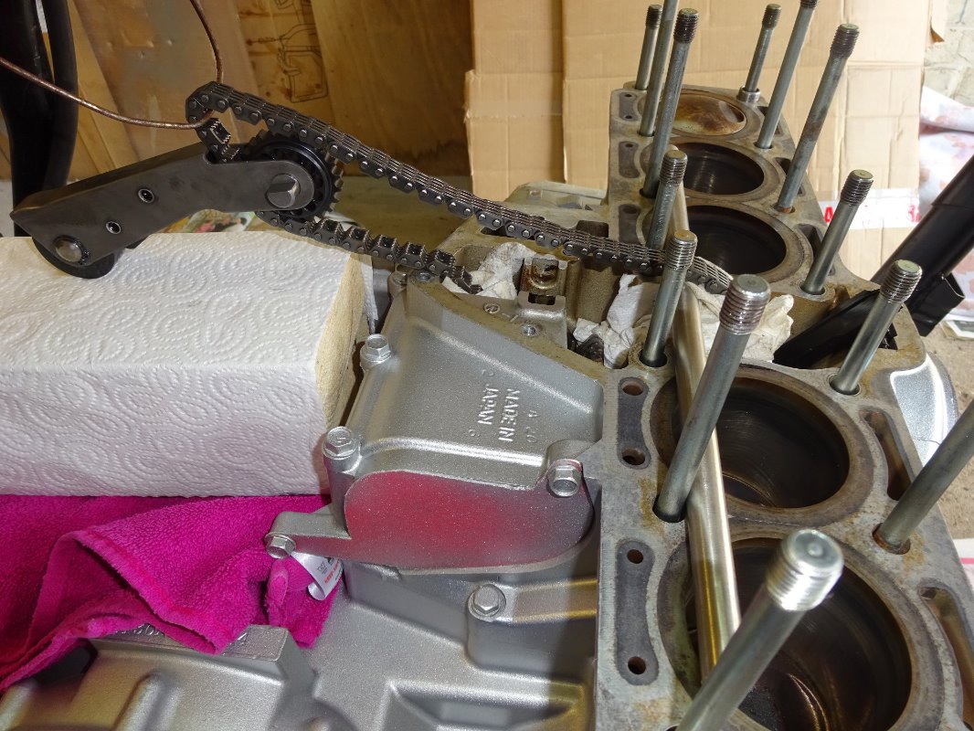 The lower rubber guide wheel was in better condition than I expected but showed some witness marks from the cam chain. I bought the new wheel from MCG in Germany (always good service and quality parts). Fitting was straightforward but ensuring that the idler shaft rubbers are fitted (and glued) correctly and don’t drop down inside the cam chain tunnel (even when this is covered as well as possible) can be nerve wracking.