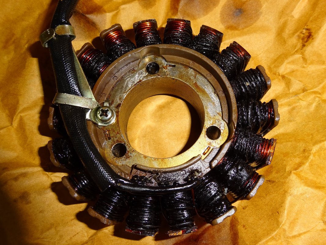 The engine has now covered around 1000 miles since fitting the Shindengen SH775 series regulator and it was good to see that the stator is free from the usual oil pyrolysis that I have observed with all previous stators (see first stator pic) and “shunt” type regulators. I would highly recommend this mod for anyone that has charging/stator issues