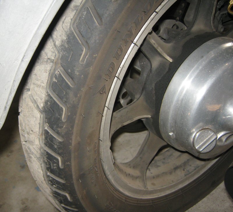 I only had the one car tyre on it - I took it off before I sold the bike. I put about 20K KM's on that tyre and it still had 50% tread left. And it was $90 fitted.
