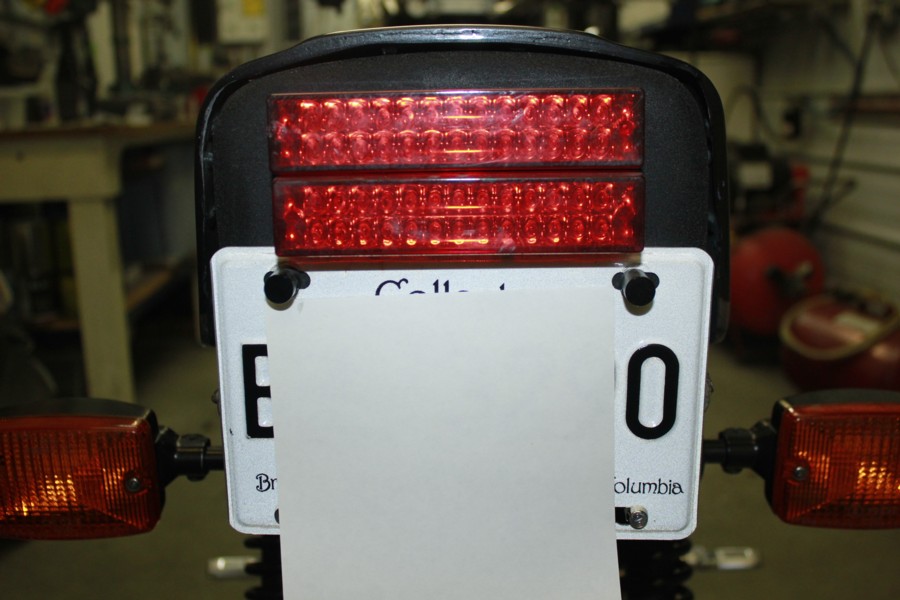 Made a fibre-glass filler for the back to mount some LED's for brake and tail light. LED bolts illuminate the license plate.