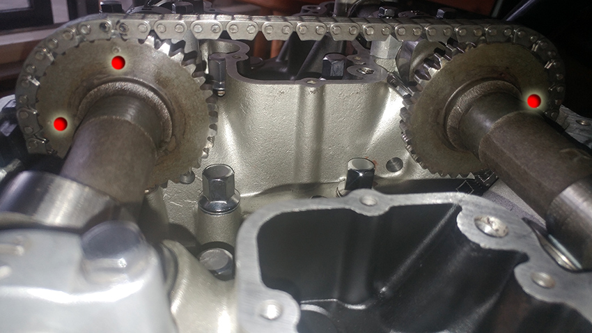 Hi Stan, that's what i was thinking before, when assembling the engine for the first time. The markings on the sprocket from both camshafts didn't line up like on the picture in the book. So i was thinking, well i take the intake cam and position the marking closer to the head surface, and so it took place.