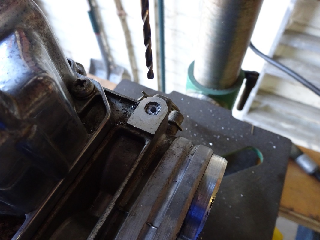 Drilling out steel screws in aluminium castings is always a worry as the aluminium is so much softer and if you don’t drill in the centre of the screw, it rapidly drifts off to one side when you break through the side of the steel screw. I used a bench drill to try and keep it straight and also centre punched the bolt in as close to the centre as possible.