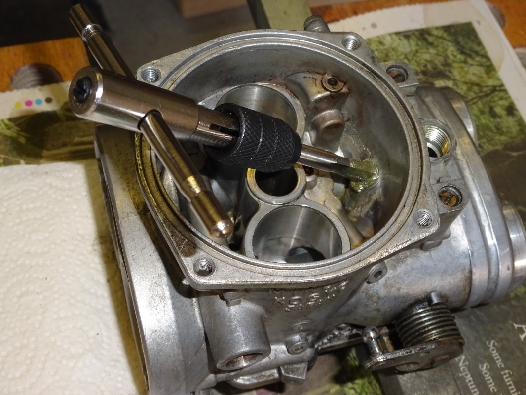 3 screws came out OK but the fourth just sheared after about one turn. **gger. At this point I decided to leave the screws in place holding the bracket to the centre carb as it’s not necessary to remove them to fit the new choke air jets.
