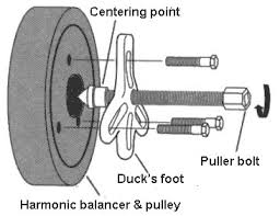 Here is the tool (harmonic balancer puller) you need to remove the assembly and it works a treat: -