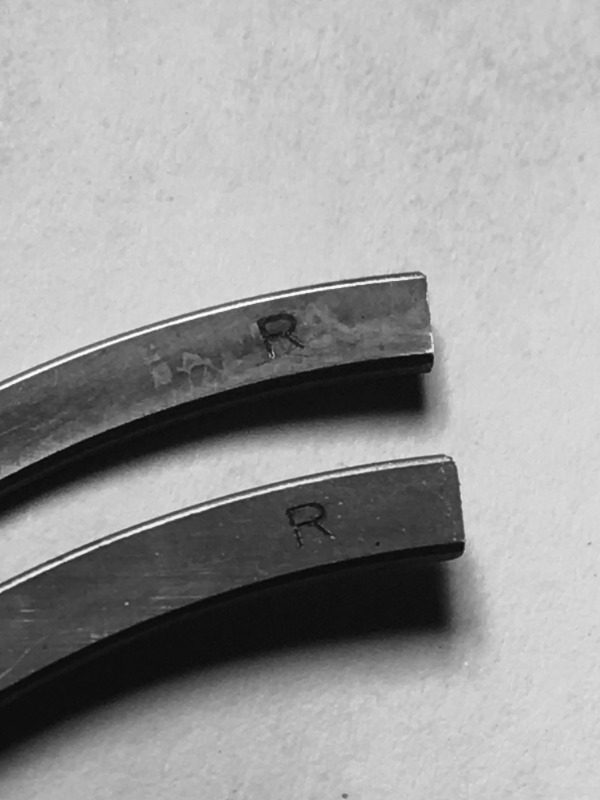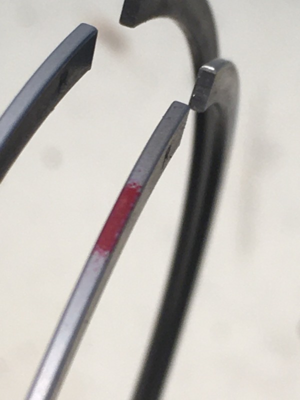 The oil-rings - no concern. It's differentiating between the top two. Both marked with an "R" for this-side-up. One is marked with red.... and this is my problem. Both of these top rings appear to have an identical profile (under magnification). There is no reference as to which position this "red' ring is to be in,